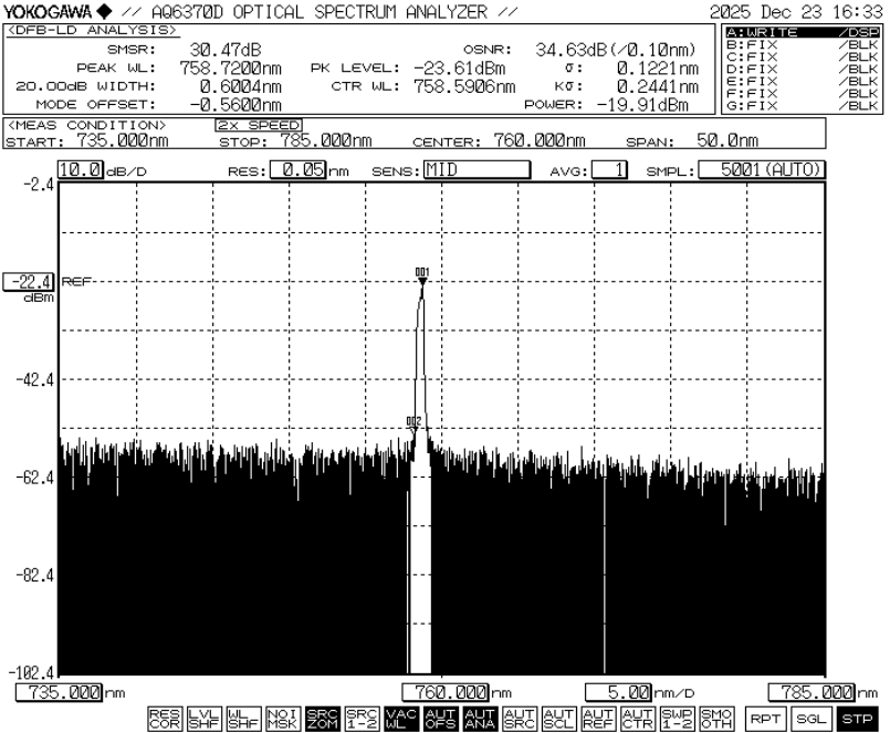 | ຄວາມຍາວຄື່ນກາງ | λc | TL=25℃CW | 758 | 760 | 762 | ນມ |
