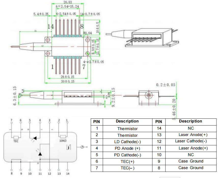 | ແຮງດັນ TEC | VTEC | TL = 25℃, TC = 70℃ | - | - | 3.5 | V |
